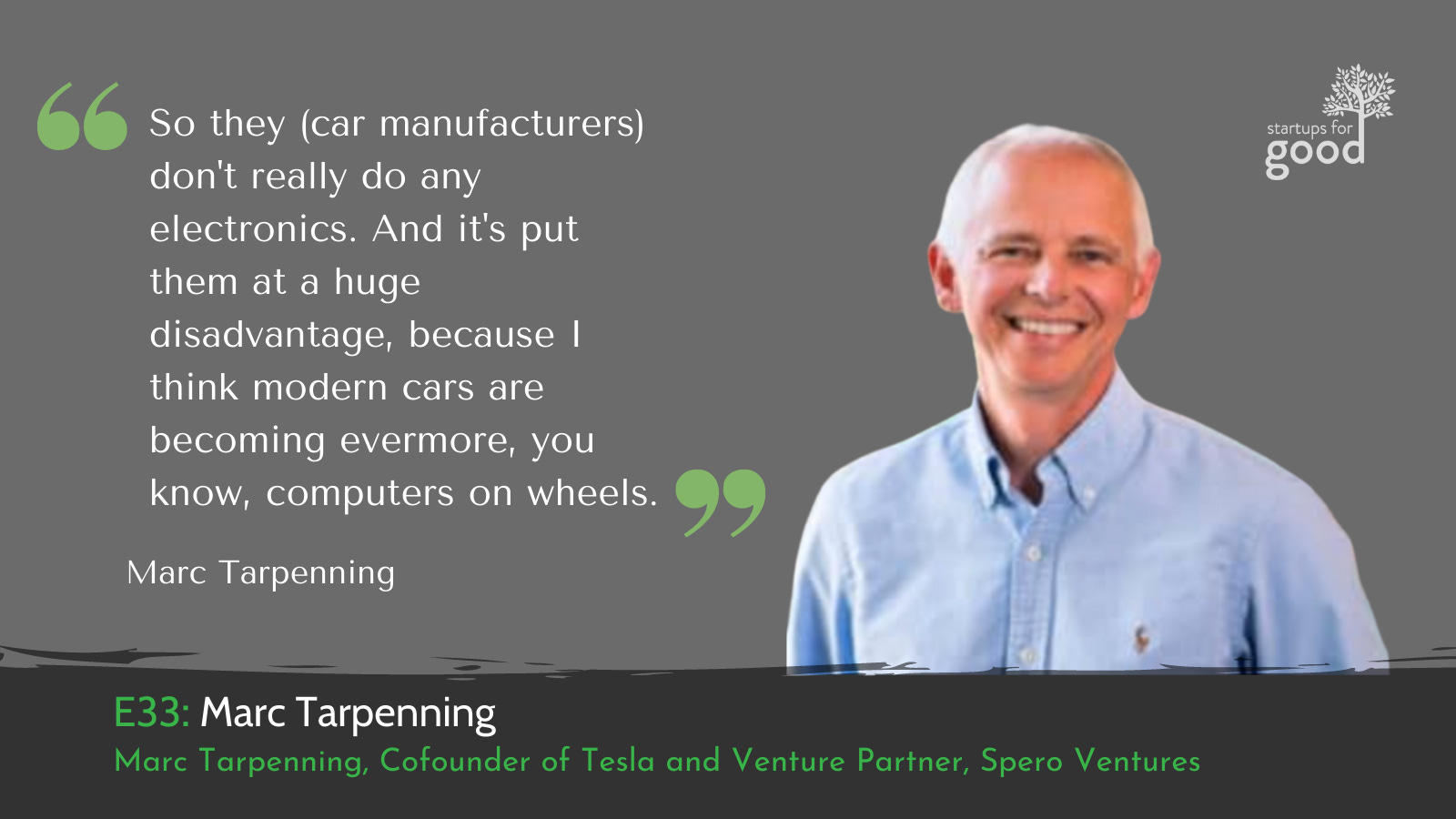“The car industry doesn't have electrical engineers in the same way that Silicon Valley thinks of them. And they, they've even outsourced all the, you know, the ECU is, which are the little computers that make the, the internal combustion engines that make the spark plugs go in, they control the engine, all of that's outsourced as well. So they don't really do any electronics. And it puts them at a huge disadvantage, because I think modern cars are becoming evermore computers on wheels.” - Marc Tarpenning